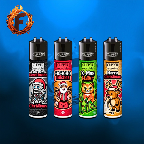 🔥 Clipper 4er Serie Xmas Slogan Lustige & festliche Feuerzeuge